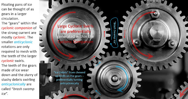 When I taught meteorology, I would try various approaches, graphics and analogies in an attempt to reach as many participants as possible. Everyone has their own, unique and favourite ways to learn and assimilate new concepts. The following graphics are examples of different ways to look at the ice pans that Thomson observed.